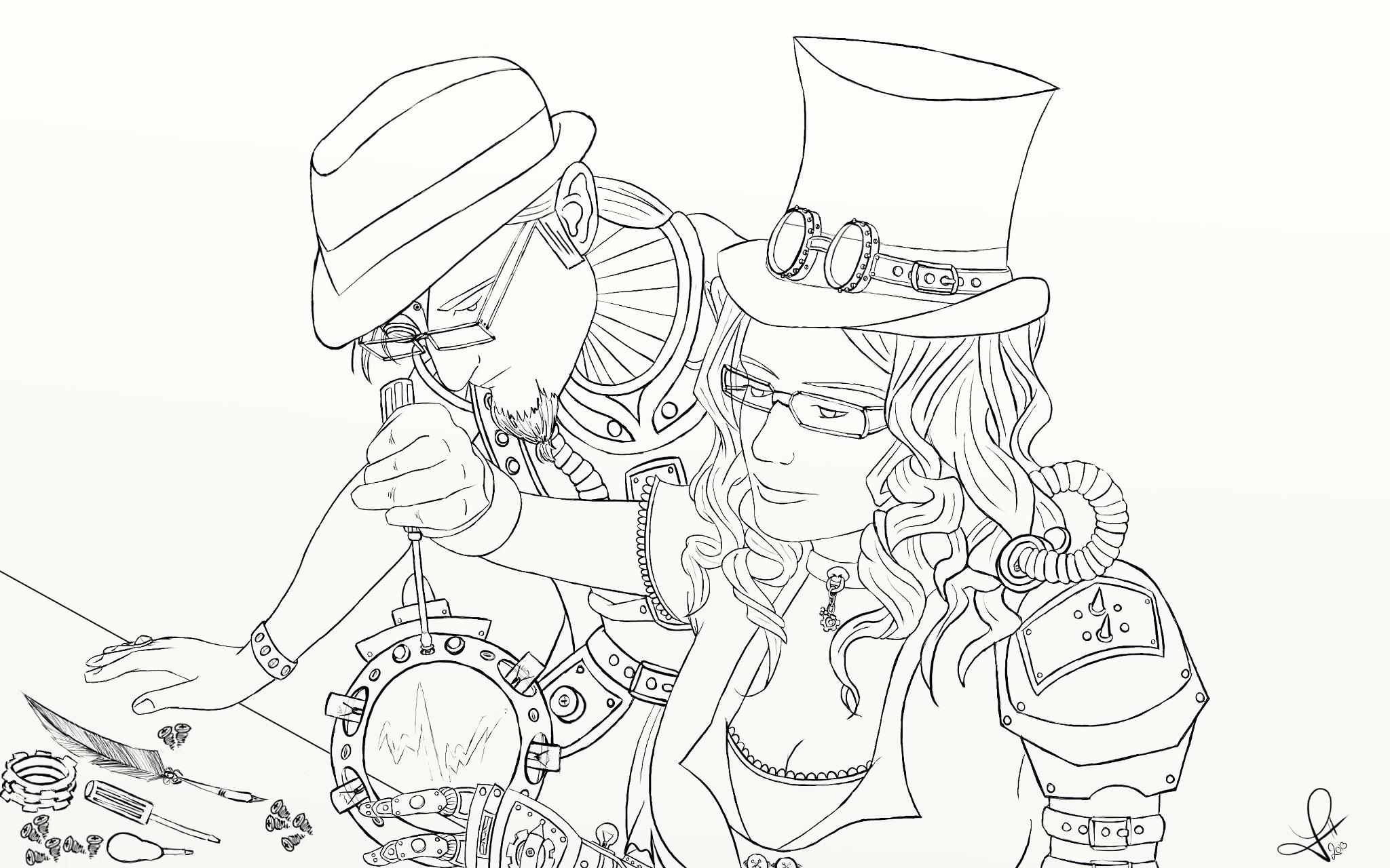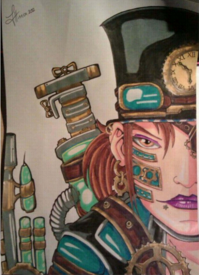 Hier ist noch die "abfotografierte" Version meiner Bleistift/Farbstiftzeichnung der Steampunk Frau :)