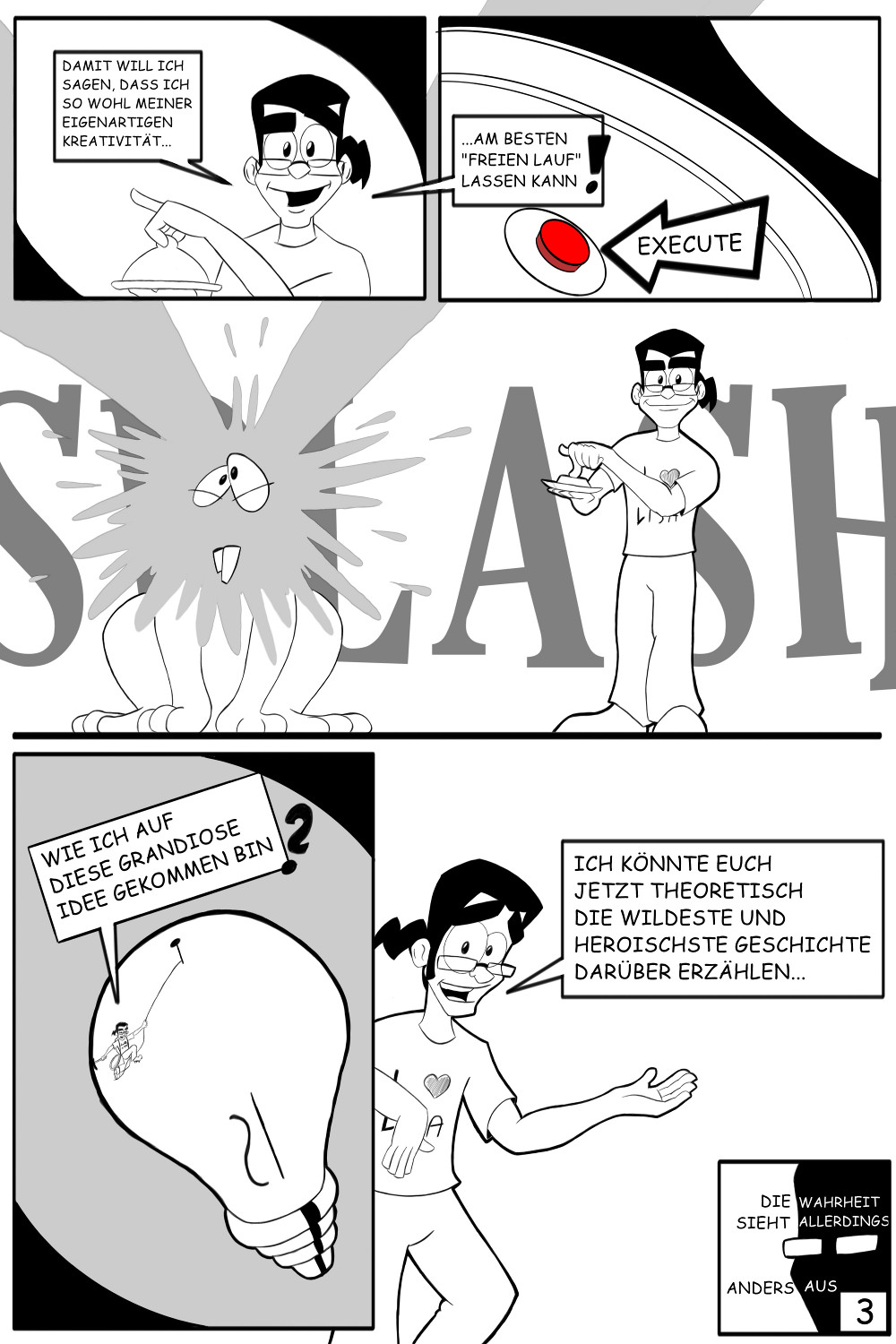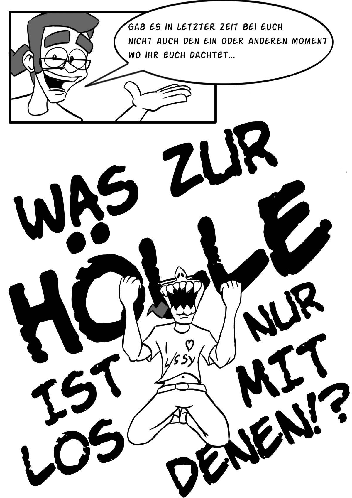 Ich hatte immer schon den kleinen, leisen und heimlichen Traum... Einen "Webcomic" zu veröffentlichen. Mir fehlte bislang neben der Zeit (und dem Talent, selbstverständlich) auch einfach die Idee. Letztes Jahr hatte ich dann die Zeit und die Idee, dann fehlte jedoch einfach die Ahnung von der Umsetzung! Schließlich, als ich jenes Problem beseitigte, war die Zeit wieder weg ^^. Welche ich seit kurzem wieder gefunden habe, wodurch ich abseits des nach wie vor nicht vorhandenden Talentes eigentlich keine Steine mehr im Weg hab...! Naja, jetz sitze ich hier und tippe immer noch an dem Post, der schon viel zu lange geht und somit auch den letzten armen Teufel verschreckt, der sich auf diese Zeilen eingelassen hat.... Egal. *schlotter* Ich red jetzt einfach mal nicht mehr um den heißen Brei herum, aus dem ganzen Schlamassel sind Fünf (!) ganze Seiten meines "Comicblogs" entstanden. Ich fand im Internet dieses tolle Forum, hab ein paar Stündchen drin geschmökert und.... Naja den Rest habt ihr ja gerade gelesen. Ich bin ein sehr kritikfähiger Mensch, weswegen ich mir dachte ich würde hier vielleicht den ein oder anderen Tipp bekommen, der mir ein wenig helfen würde...! Oder vielleicht gibt es hier eine rettende Seele, welche mir sagt : " Hör auf mit dem Schwachsinn! Spar dir deine UND UNSERE ZEIT!"... Nun, dann ist uns doch allen geholfen! :)