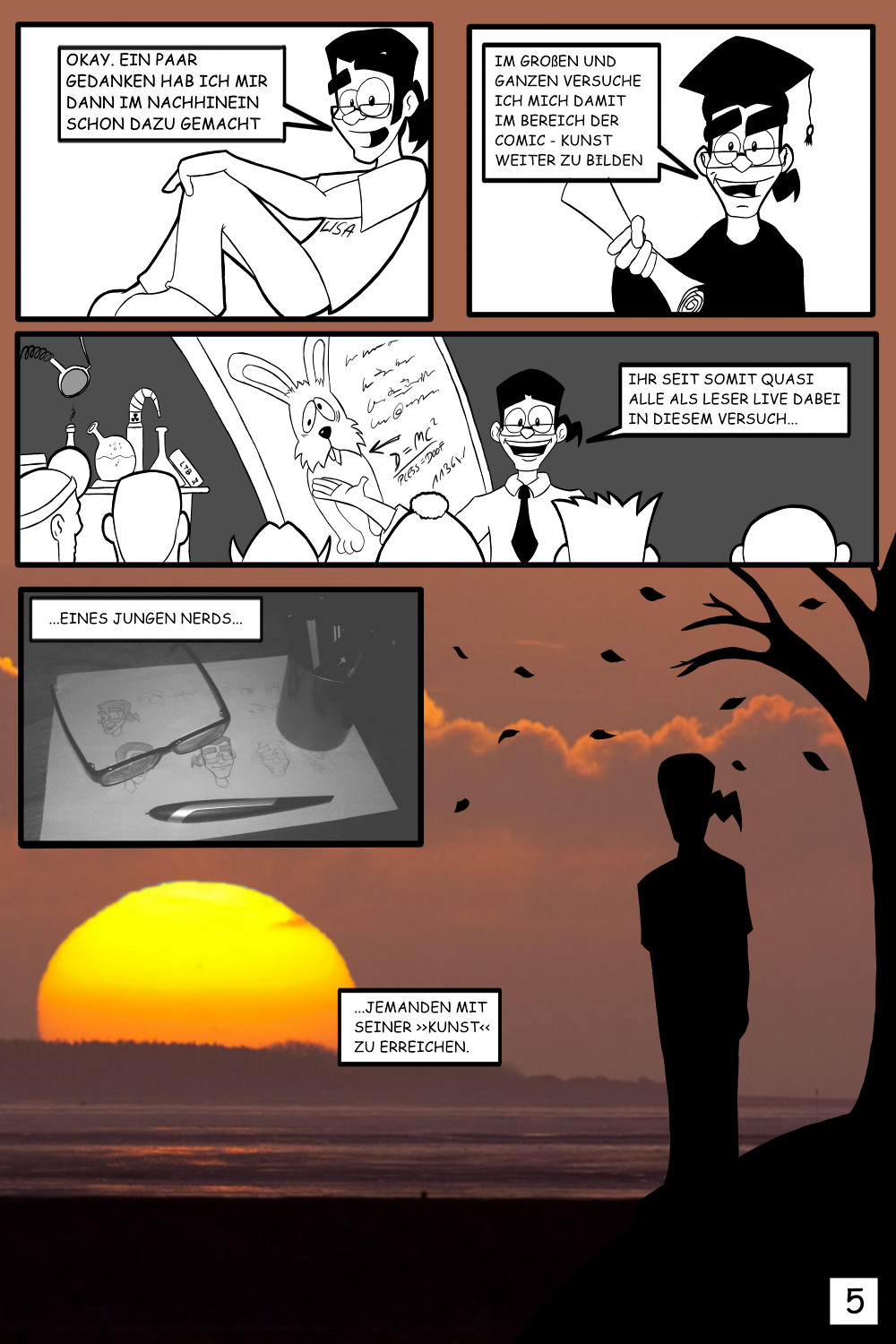 Zu deiner Frage der "Richtung". Nun, ich denke es wird beides. Ein philosophischer Gedankengang in Form eines Comics, aus dem Hirn eines Nerds... Hm, ja so stell ich mir das vor. Dein Interesse bedeutet mir viel und ehrt mich zutiefst, ich freue mich, hier neues zu zeigen!! :)