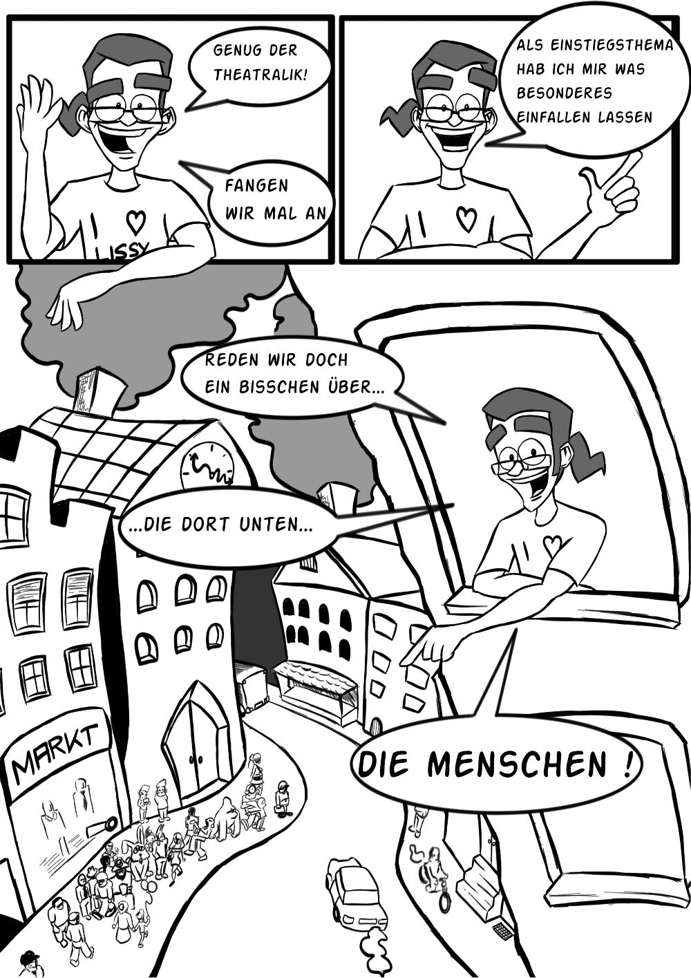 Der Begriff sagt mir was und das ist die Gefahr, welche ich noch versuche zu überlisten! Ich skripte gerade das erste "große" Thema.. "Menschen"... Und ehe ich mich versehe, rede ich fünf Seiten über mich, anstatt den Gedanken klarer zum Thema zu formulieren. Generell habe ich noch Probleme, Selbstvertrauen in ein Panel zu setzen. D.h. Ich bin mir noch nicht ganz sicher, "Hat der Leser das nun kapiert ?".. Lieber setz ich noch drei, vier hinterher um den Standpunkt zu untermauern, was dann eben in obig genannten Selbstgespräch endet.
