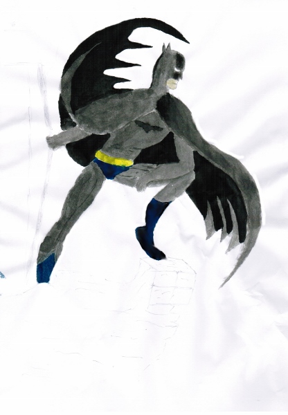 außerdem ist bei Batmans rechtem Bein kein Kniegelenk zu erkennen. Der Unterschenkel sollte nach unten dünner zulaufen, so sieht das Bein nämlich aus wie ein Baumstamm. :D