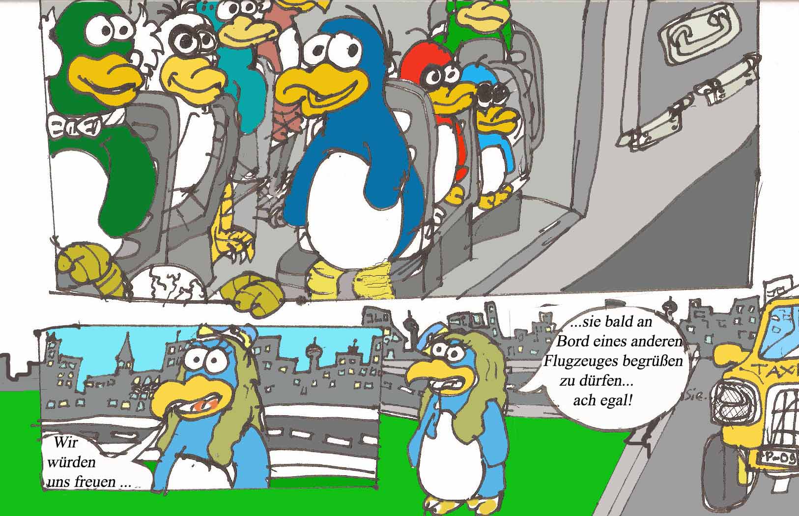 Im ersten Band, finden die pinguine eine verlassene Vorschungsbasis aus der sie alles mitnehmen, unter anderem einen Fernseher.