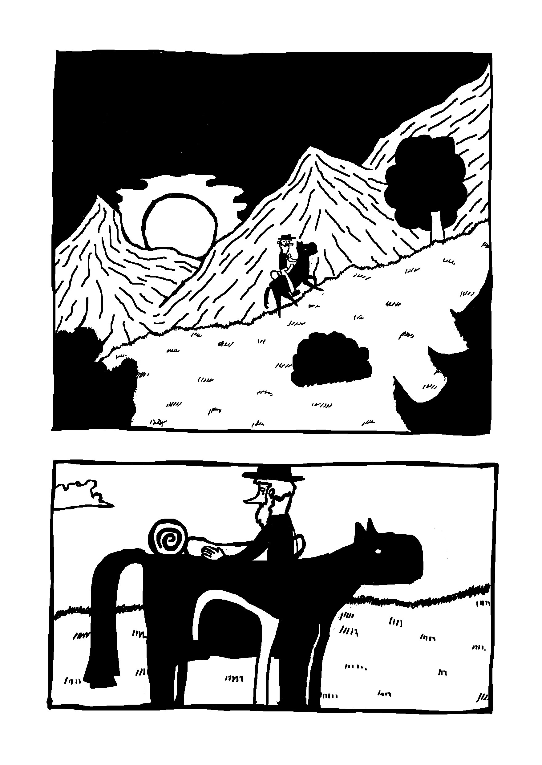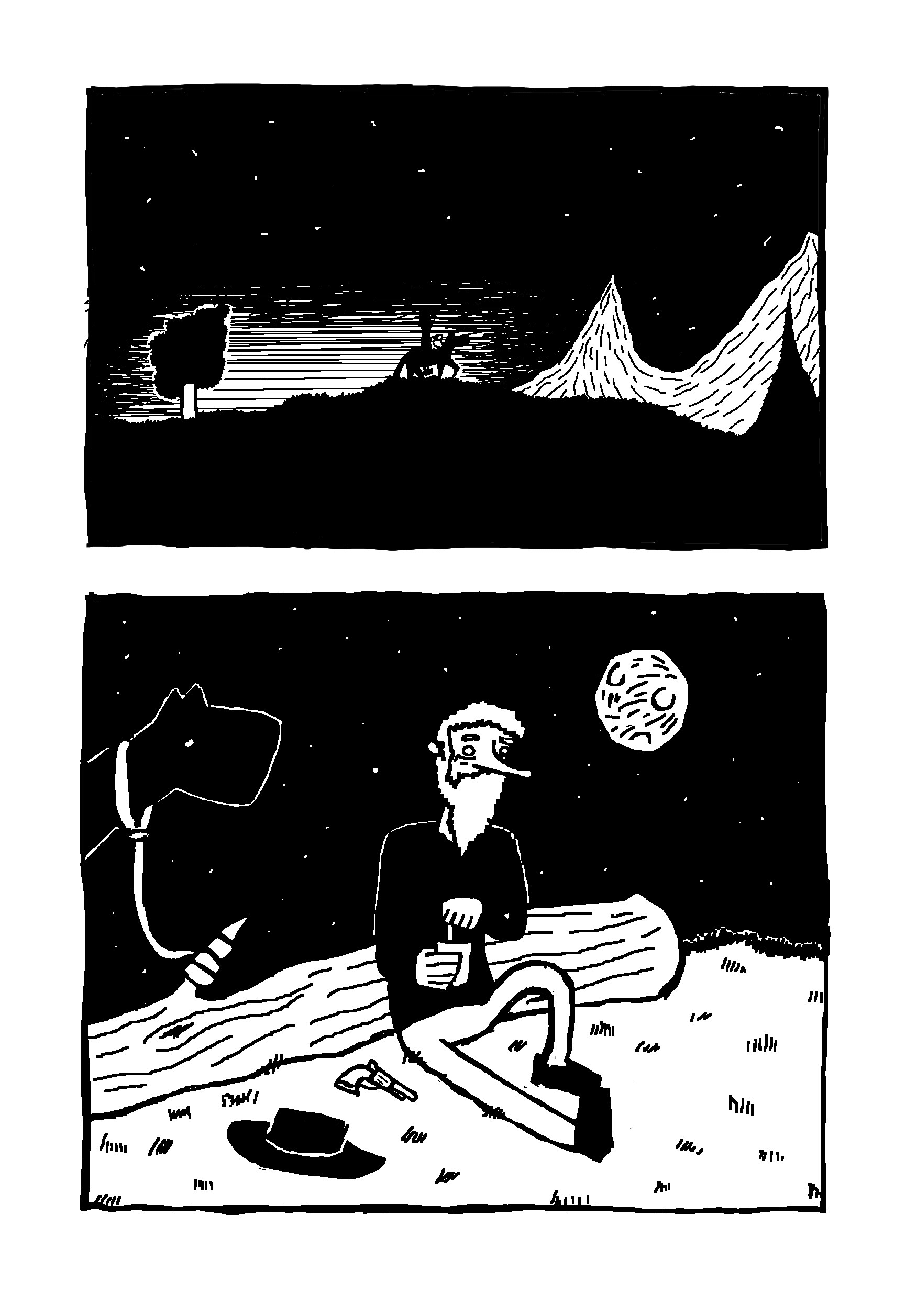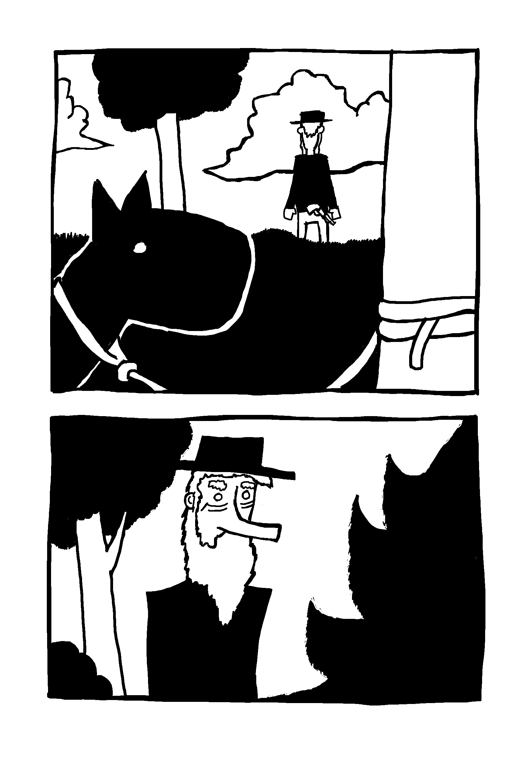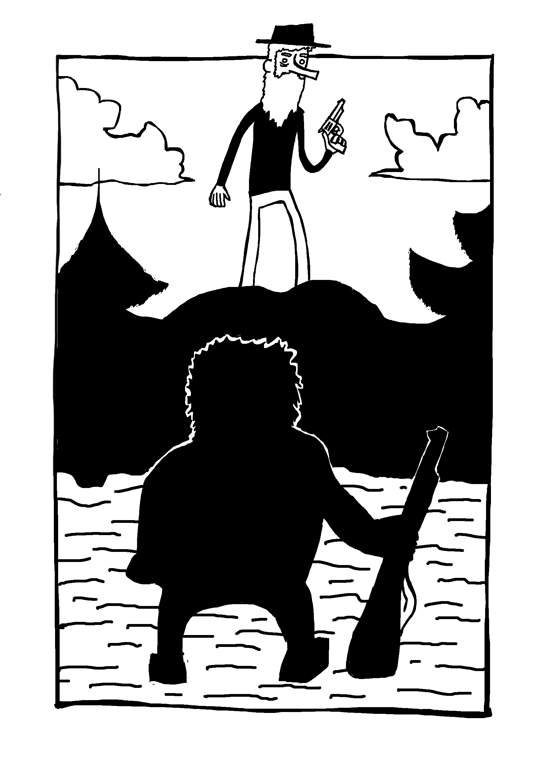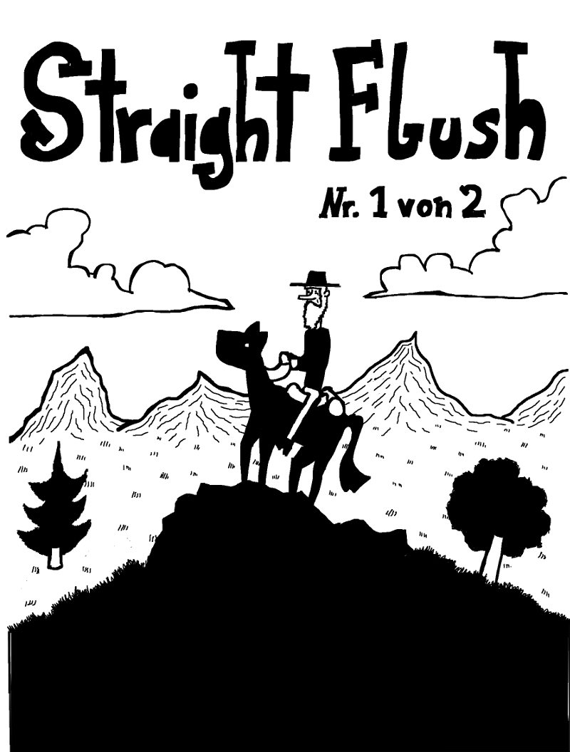 Nein es nicht noch nicht zu Ende. (Im zweiten Teil wird dann mehr geredet). Ich mache jetzt erst einmal den Hack-Comic fertig, dann ueberarbeite ich den ersten Teil des Westerns und versuche ihn auszudrucken und in Mini zines zu falten und so und DANN mache ich mich an den zweiten Teil. Duerfte also noch etwas dauern.