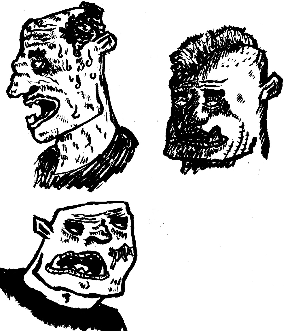 Wirklich sehr furchterregende Typen. ;( Bei dem rechts außen versuppt eine Gesichtshälfte etwas im Schwarz. Schade um die schöne Zeichnung.