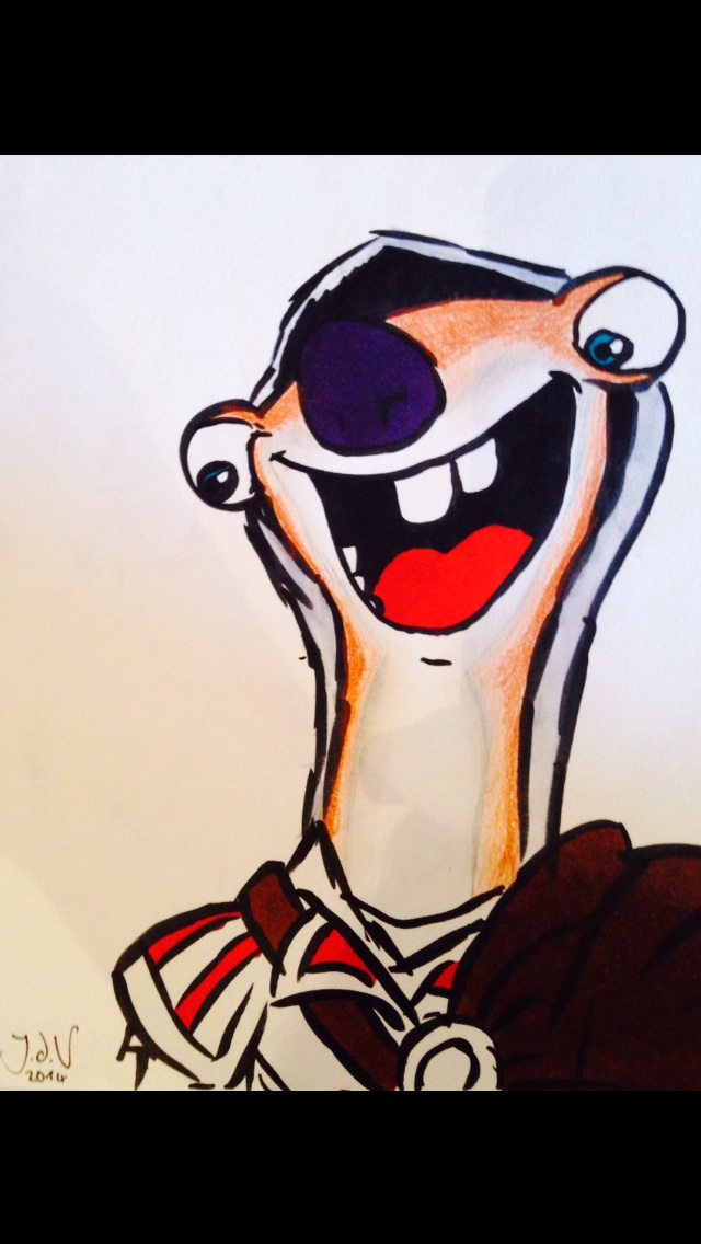 Hübsch gezeichnet das niedliche Kerlchen. Aus welchem Film ist der? "Ice-Age", oder so?? Sparsam koloriert. Das ist gut gemacht.