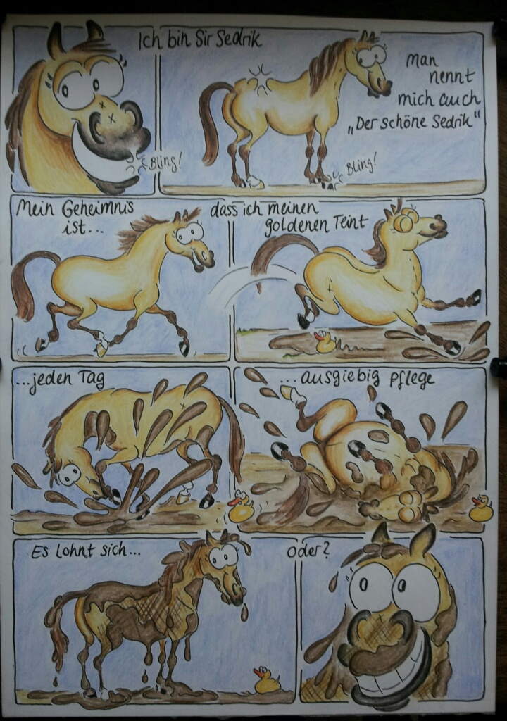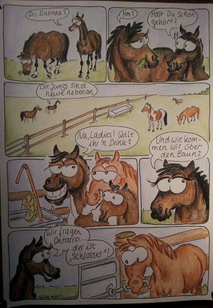 Habe in der Zwischenzeit noch einige Pferdecomics gezeichnet. Ich hab keine Ahnung ob sowas für "nicht Pferdeleute" überhaupt funktioniert... und vielleicht ist der "Coolness-faktor" von Pferdegeschichten nicht so hoch. .. aber Übung für mich ;) :)