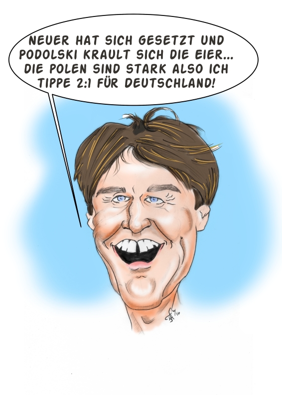 Wenn Du sowas in die Zeitung bringen willst, mußt Du allerdings bedenken, daß morgen das Ergebnis des Spiels Deutschland-Polen schon feststeht und Dein Cartoon damit veraltet sein wird.