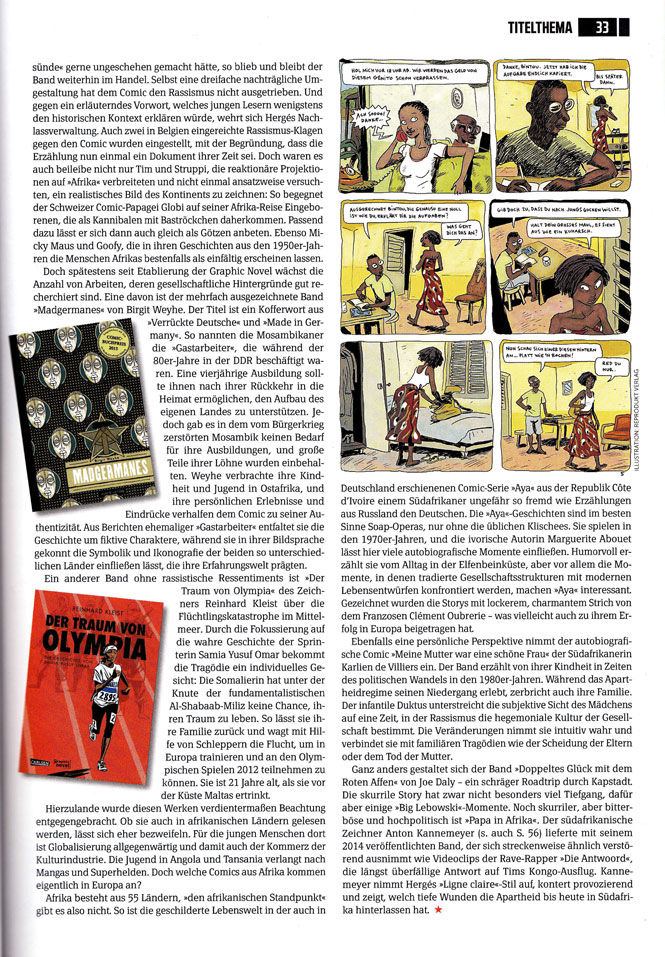 In der aktuellen Ausgabe der "Melodie & Rhythmus" finden sich gleich drei längere Beiträge zum Thema Comics: über das Afrika-Bild in Comics, über den südafrikanischen Zeichner Anton Kannemeyer und eine Besprechung der Manga-Serie "Dimension W" von Yuji Iwahara...