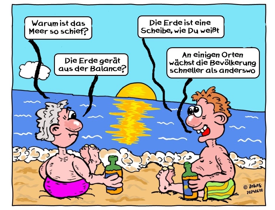 Das mit dem nach rechts abfallenden Meer hat vermutlich folgenden Grund: Da, wie wir wissen, die Erde eine Scheibe ist und die verschiedenen Länder unterschiedlich hoeh Geburtenraten haben, ist die Erdscheibe wohl etwas aus ihrer Balance geraten. :wacko: