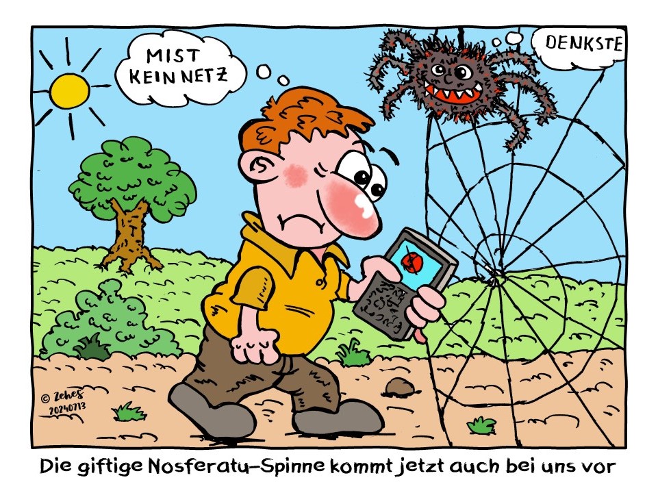 Spinnen haben immer acht Beine (sind ja keine Insekten). Und für den Gag hätte es die Nosferatu-Spinne nicht unbedingt gebraucht...