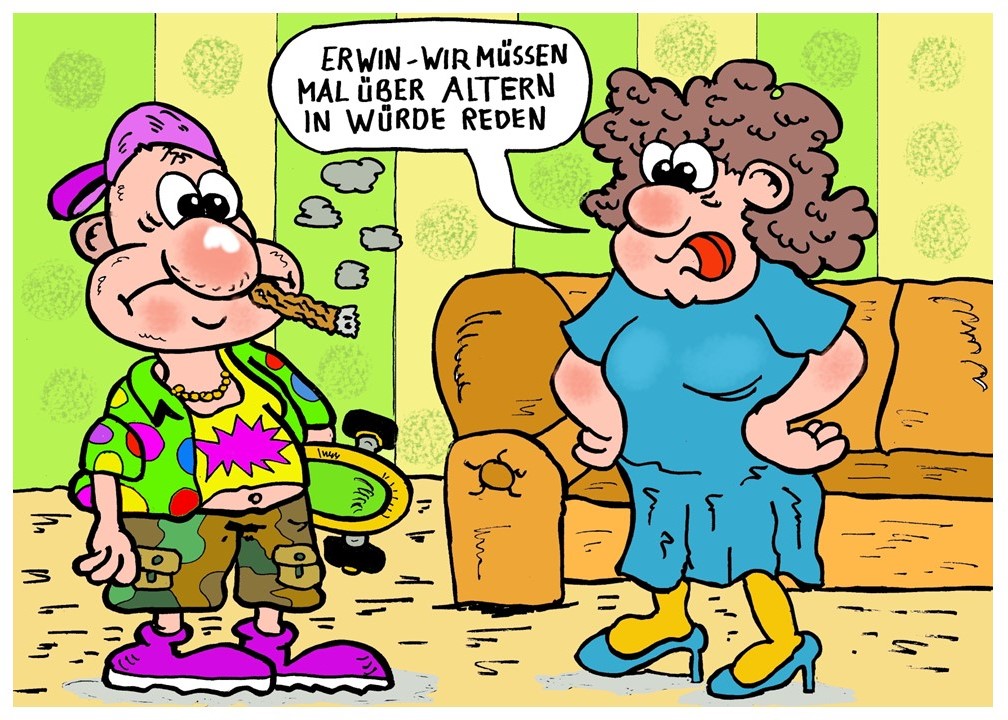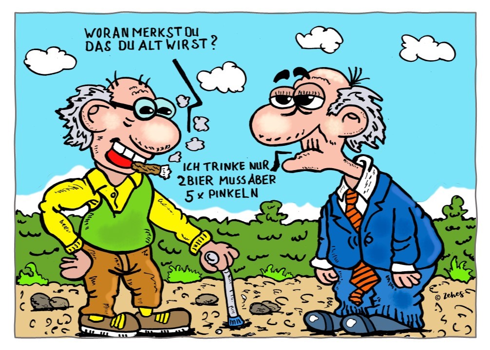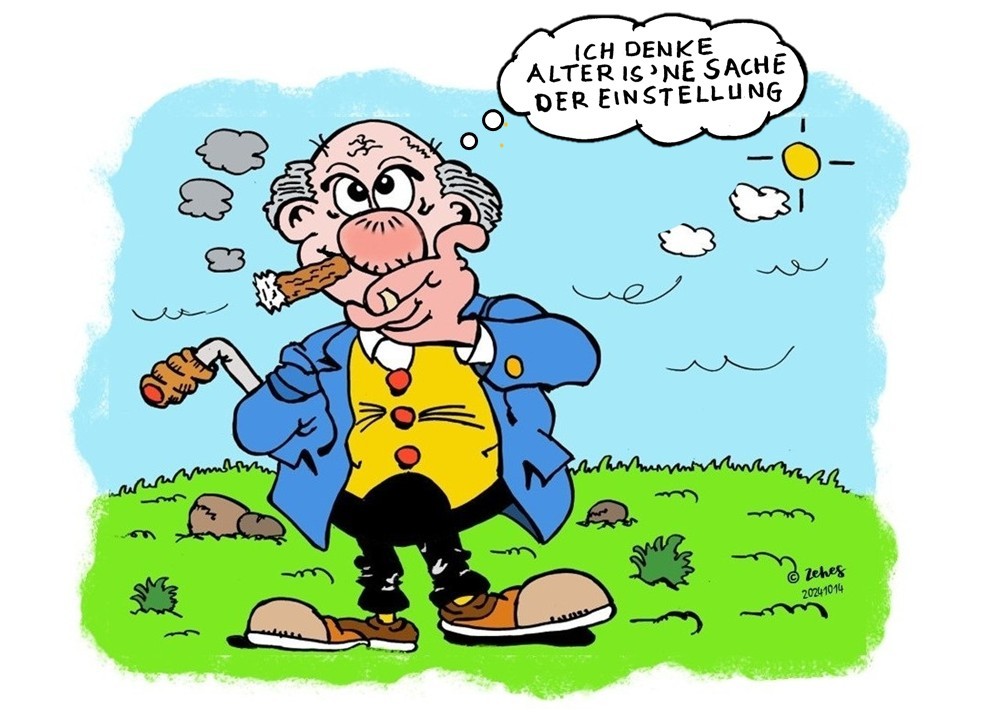 Deine Cartoons machen mal wieder gute Laune , Zehes . Und die Strategie des Typen in deiner zweiten Zeichnung ist natürlich auch eine Möglichkeit , mit dem Älterwerden umzugehen .