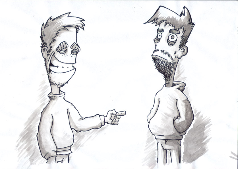 c&c sind erwünscht, denn das ist mein erster richtiger auftrag in die comicrichtung, wenn das alles gut geht, findet man die figuren auch auf zukünftigen, plattencovern oder t-shirts!