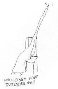 Das unten stammt von einer wirklich vollgehudelten Seite Billig-Kopierpapier, aber als ich das kleine Kerlchen eben so eigenartig blicken sah, konnte ich nicht anders, als Tusche auf seine Bleistiftstriche zu geben und einen kleinen Text dazuzuschreiben....