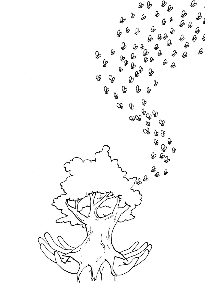 Die ursprüngliche Idee war ja mehr was mit Hände, aber dann hat mir die veranstalterin von so einer alten Indianersage erzählt, in der es heißt, dass die Toten als Schmetterlinge wiedergeboren werden.