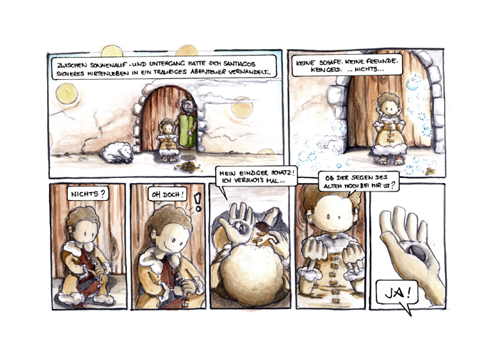 Inzwischen sind die Sprechblasen gesetzt und alles ist coloriert, ich haue also mal eine Seite von "mittendrin" rein :)