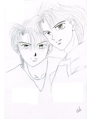 und ganz allgemein find ich die haare bei den mittleren nicht so toll. die sehn so lust- und leblos aus. vielleicht etwas weniger einzelne haare zeichnen und mehr die frisur als ganzes betrachten. und dann noch ein paar mangatypische glanzlichter und voila! schon wirkts ganz anders :D