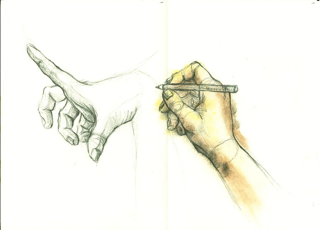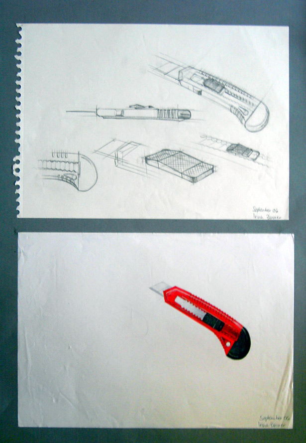 Bei der ersten Aufgabe, sah das Stillleben, das wir abzeichnen sollten so aus: Ein großer Tisch, ein paar Stühle kreuz und quer darum, ein Einkaufswagen mit zwei großen Papprollen und viiiiiel, viiiiiiiiiiel (noch mehr!) zeknülltes Papier (so ganz langes/breites) auf den Stühlen und dem Tisch drapiert. Die Zeit für die ersten Aufgaben war echt richtig heftig! Für die Bleistiftzeichnungen gerade mal 15 Minuten pro Blatt, da bleibt keine Zeit um großartig nachzudenken oder Fluchtpunke zu planen. Einfach alles durchziehen auch wenn es vor Fehlern nur so strotzt!