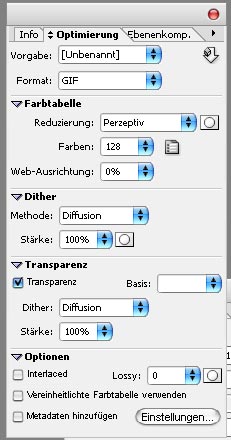 Du mußt natürlich auch unter "Fenster > Optimierung" auf gif stellen.