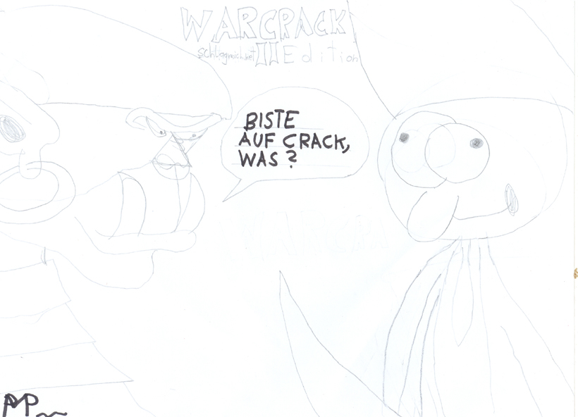 Ich habe die Skizze vor glaub ich einer Woche gezeichnet. Dabei hab ich das Warcraft 2 - Spiel genommen (also das cover) und habe versucht, das in die comicform zu bringen.