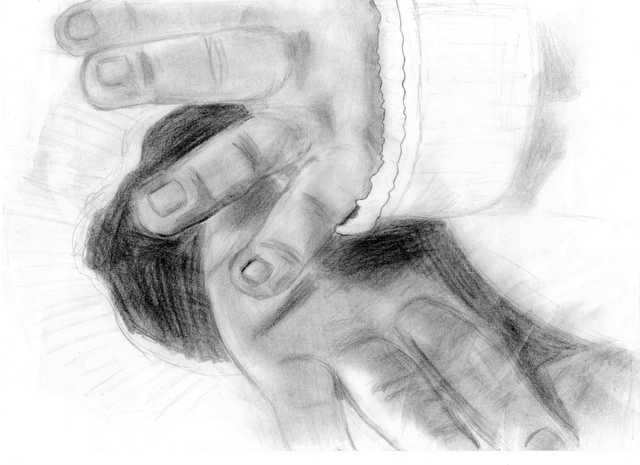 Hände sind in der Tat eine schwere Übung. aber die Ergebnisse sind schon recht gut. Ihr müßt genau hingucken! @ Mangaka: Die obere Hand hast Du gut getroffen, bei der unteren aber nicht mehr so genau geguckt, oder?