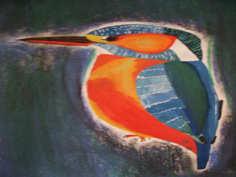 Den Vogel mit Aquarellfarben. Den Hintergrund mit Pastellkreide.