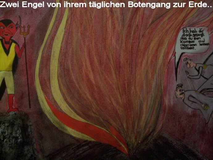 Oho, diesmal richtig mit Witz, das gefällt mir! Ich frage mich nur, warum Du das Feuer so sehr in den Mittelpunkt gerückt hast. Ist das so wichtig? Alles in allem gute Arbeit, finde ich.