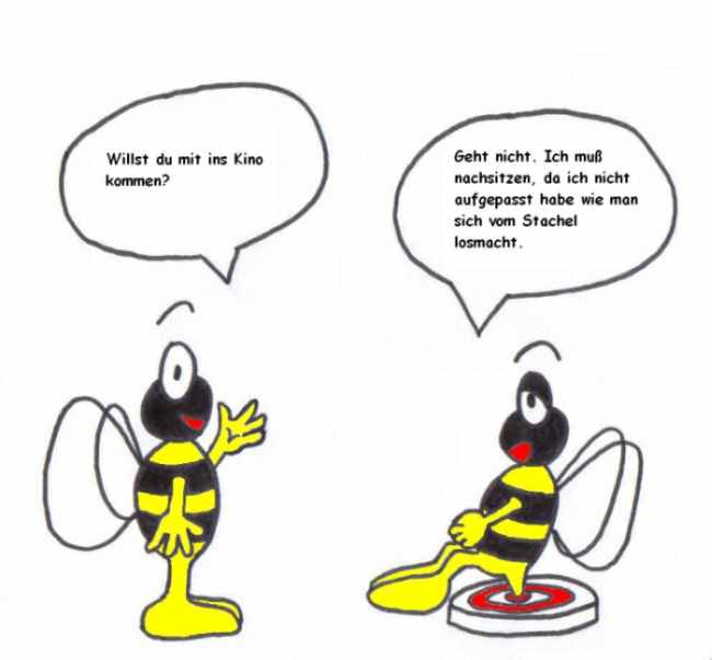 "Geht nicht. Ich muss nachsitzen, da ich nicht aufgepasst habe wie man sich vom Stachel losmacht."