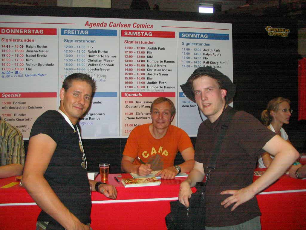also ich muss sagen, dass es riesig toll war, mal die leute von nahen zu sehen und so richtig real zum anfassen zu haben, mit denen man sonst immer nur schreibt! war echt mal ne erfahrung! muss man mal gesehen haben den comicsalon!