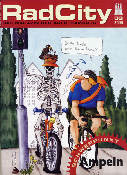 Für den ADFC Hamburg habe ich das Titelblatt gezeichnet mit dem Hauptthema "Bettelampeln".