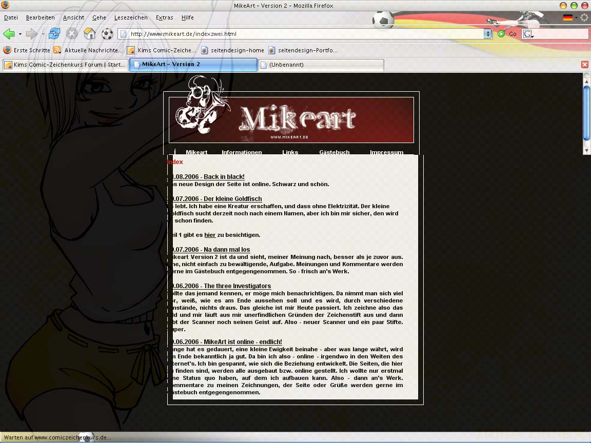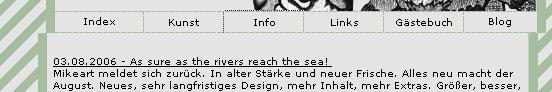 meine ganz, quasi Druckfrische, neue Internetseite ist online. Zum betrachten dieses vollzüglich Meisterwerk einfach nur dem wunderbaren Objekt in meiner Signatur folgen. Oder - für den Rest - www.mikeart.de