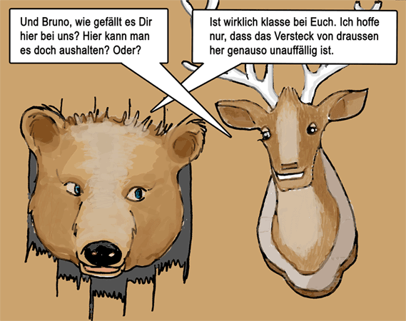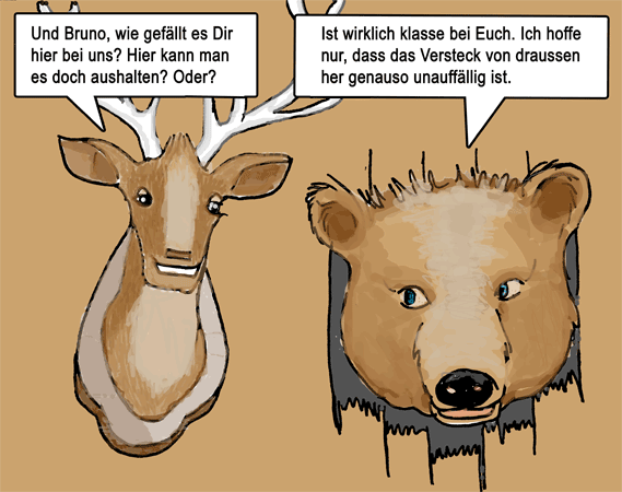 guter Gag. Besser wäre es, wenn du die Zeichnung spiegelts, damit sich die Sprechblasen nicht überschneiden müssen.