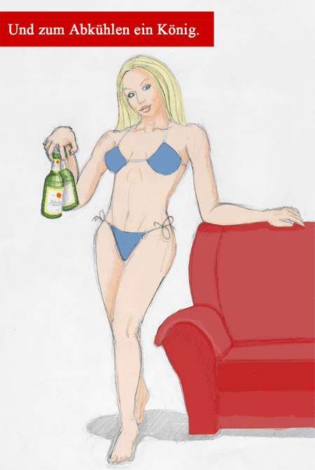 Mit der Bikinischönheit ist sicher gut Bier trinken, aber achte mehr auf die Proportionen: Ihre Arme sind zu lang. ;)