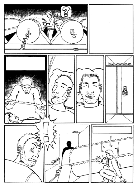 Es sind die Seiten 2 bis 4. Auf der Seite 1 die bisher nur als Vorskizze existiert, ist oben als Totale der Weltraum zusehen und unten in drei Panels ein vorbei fliegendes Raumschiff.