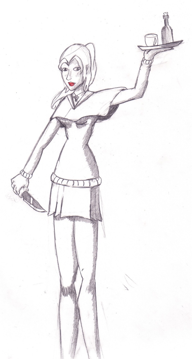 Also nach Schulgekritzel siehts mir ja nicht aus ;) Ich bleib bei meiner Meinung, wie bei den Bildern davor (genau, die sw :P), sieht echt gut aus! Nur, wenn ich mal fragen darf, was hat die auf dem oberen Bild in der linken Hand ?(