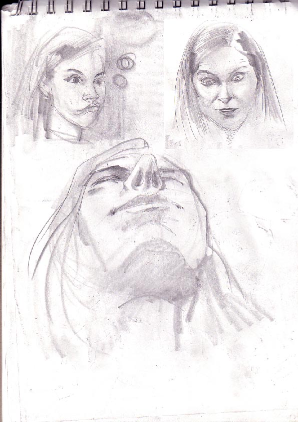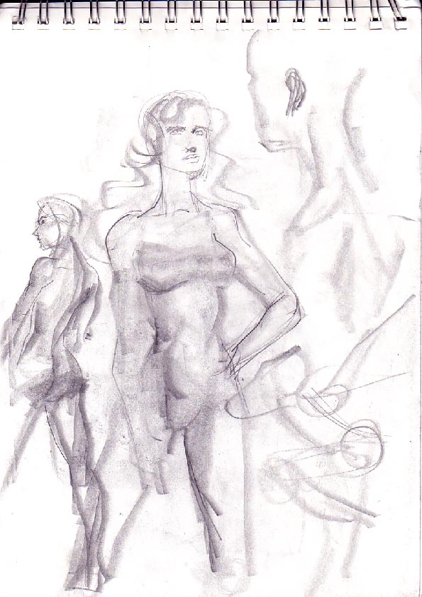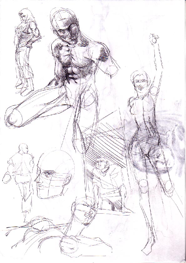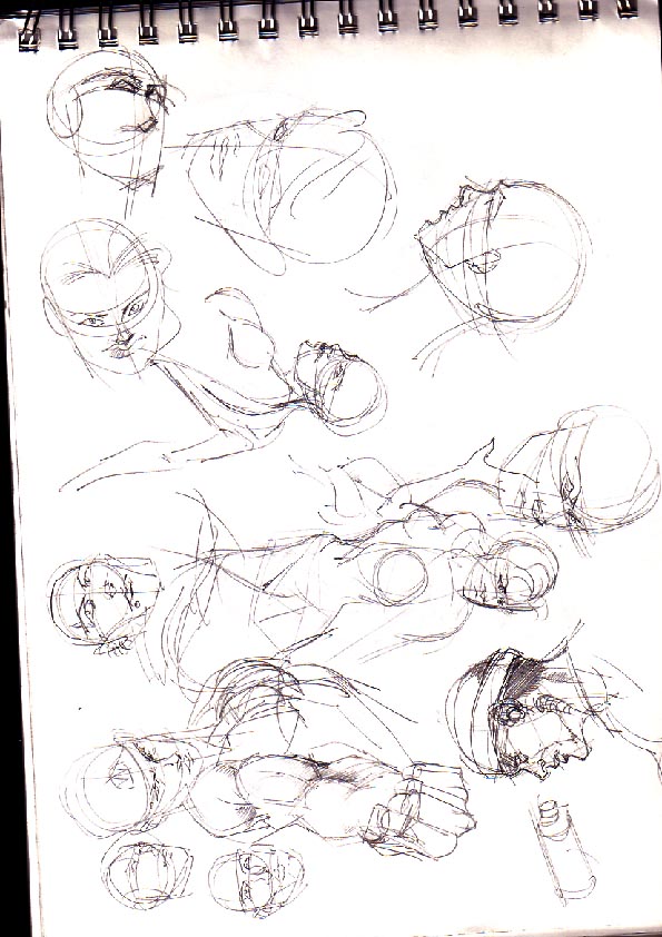 Mir gefällt besonders, wie Du die verkürzten Perspektiven hin bekommst bzw. die "außergewöhnlichen" Perspektiven zeichnest (z.B. das mit dem Frauengesicht von unten; wo man der Frau in die Nasenlöcher schauen kann ;-)). Auch die unterschiedlichen Stile sind gut. Schöne Arbeiten, weiter so!
