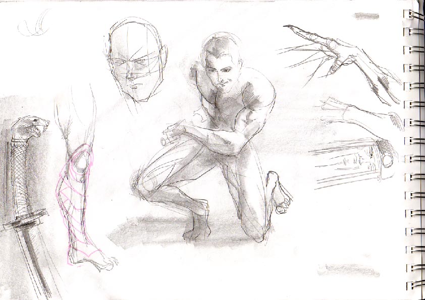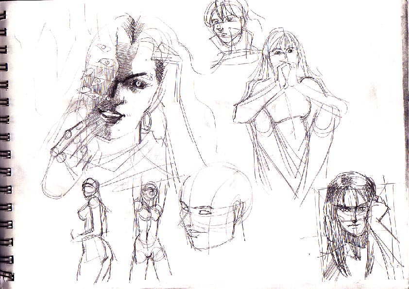 Da das skizziern so richtig schnell geht,hatte ich fast immer genug Zeit um zum Üben, hab dabei paar ideen aufs papier gebracht. Zu Quelle der Inspiration sag ich nur : Internet, Filme, Spiele,Alltag und ab und zu einfach Langeweile im Unterrricht.;)