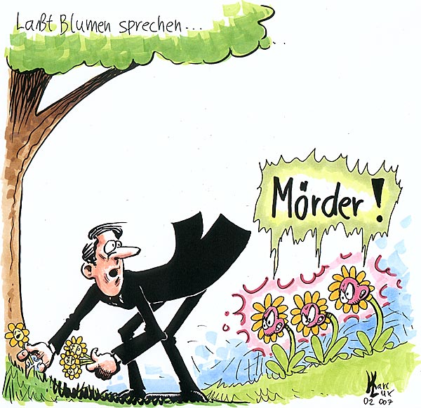 Wie geil, lasst Blumen sprechen. Das is aber ne richtig gute Idee. Du hast so nen richtigen Karrikaturen Stil, echt mal was ganz anderes.