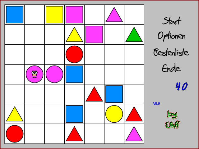 In Abhängigkeit von der Schwierigkeitsstufe müssen entweder 3, 4 oder 5 (das ist wirklich schwer!) gleichartige Figuren in einer Reihe angeordnet werden.