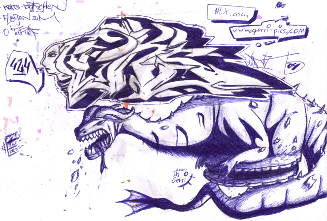 Den Drachen finde ich cultig, aber was ist das für ein Gekritzel darüber?