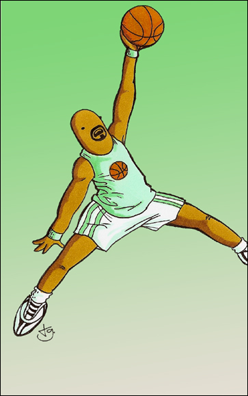 Die Frage, die mich echt beschäftigt, ist: warum hat Quezos Basketballer die 1 in Spiegelschrift auf dem Trikot stehen? Und was ist mit dem Kopf von Tims Basketballer passiert? Sieht ein bischen aus, wie ein Basketball spielendes Würstchen... ;)