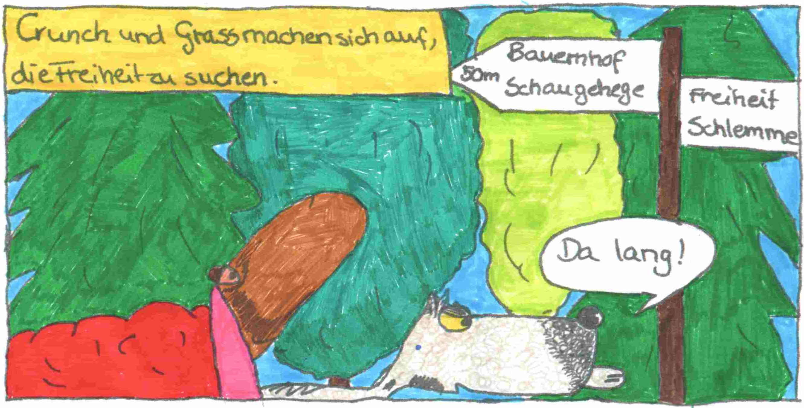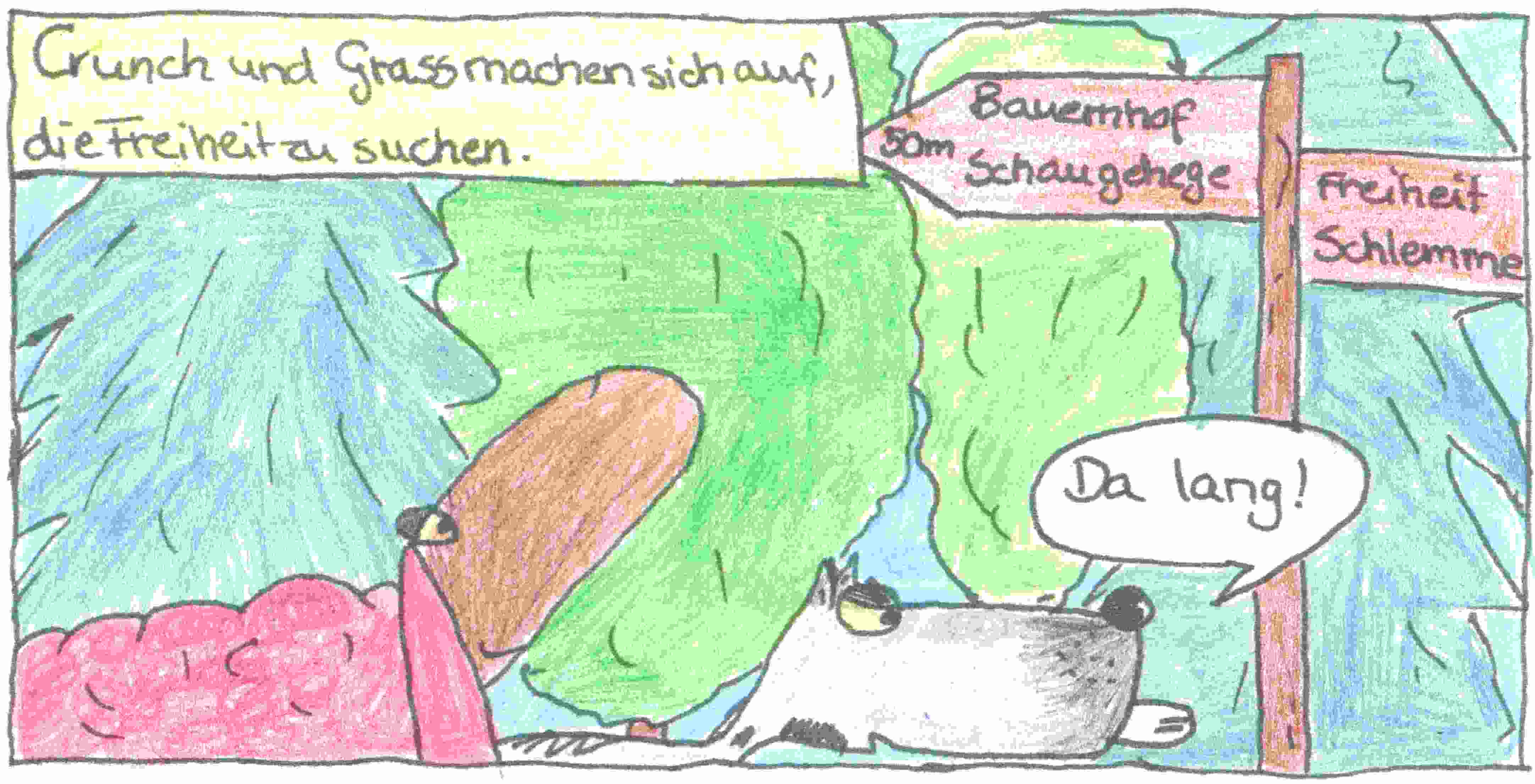 hier ist der 1. teil von "Crunch & Grass -Und die Suche nach dem Paradies/ oder die Suche nach der Freiheit " zwar noch in schwarz/weiß aber die farbe kommt noch . zum 1. teil gehöhren noch weitere 4 bilder die aber noch in arbeit sind. ich hoffe auf kritik. pinselfreak