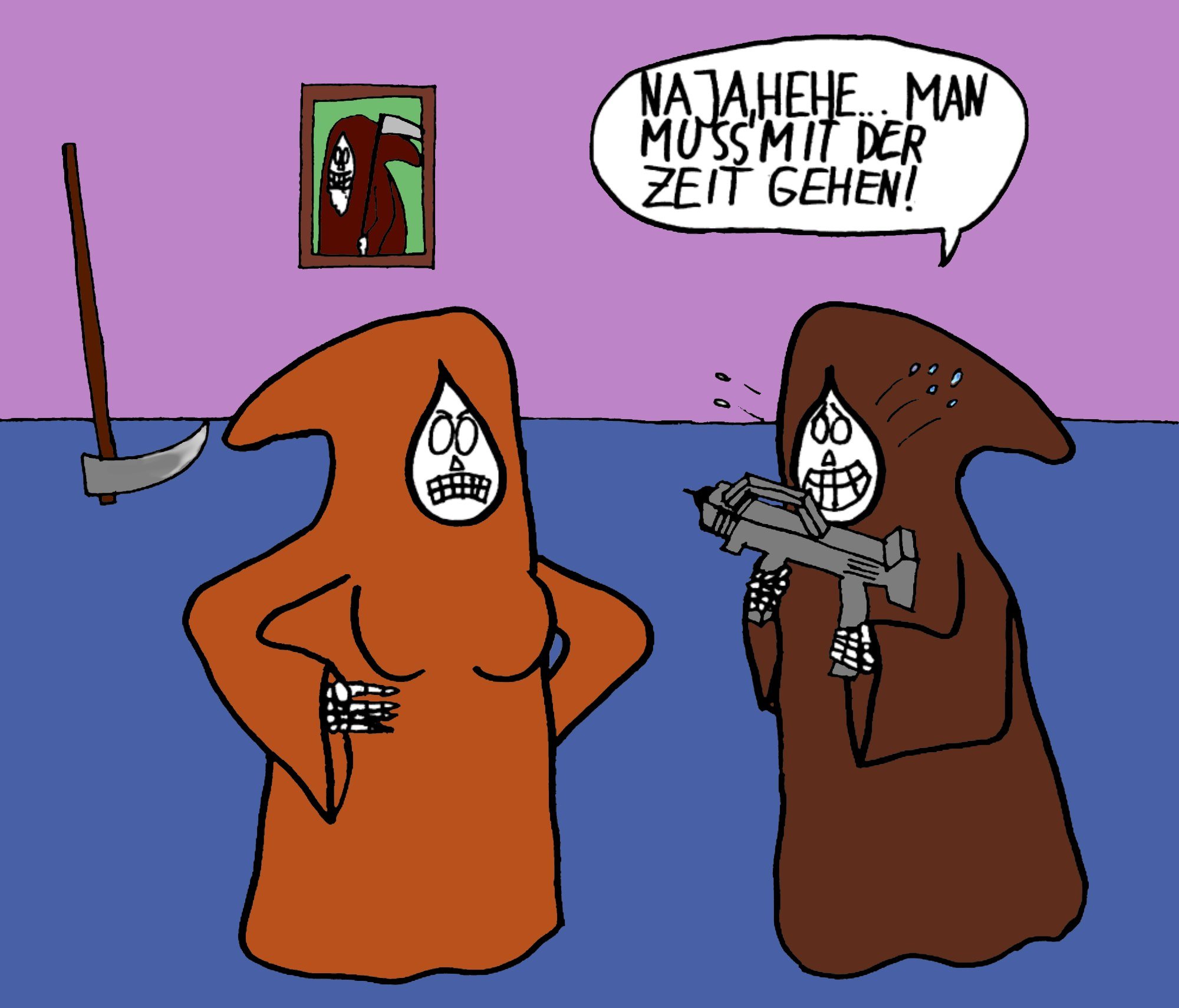 ach ja wenn ihr neue toons zeichnet die ihr besser findet als die die ihr hier reingestellt habt, wechselt doch bitte die dateianhänge aus und erstellt keinen neuen beitrag! sonst kommen zu viele beiträge zustande! der leser dieses threads soll einfach die cartoons von einem nur zusammen finden, damit das nich zu verwirrend ist!