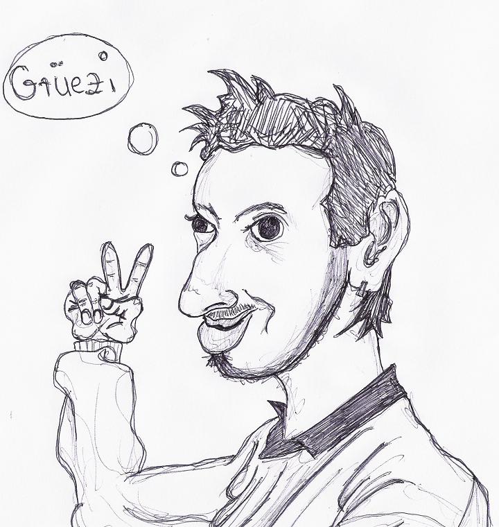 hier ne schnelle skizze...gesicht is zu dünn und der wieder erkennungswert is auch nich besonders groß.. :(
