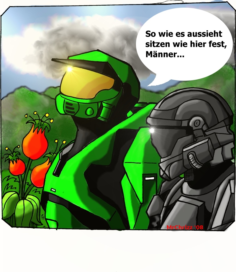 Ich plane das schon laenger und nun ist es endlich soweit. Auf www.halobase.de (ja ich bin Halofreak, aber sind wir nicht alle ein bisschen nerdy?) schreiben wir munter seit Monaten an einer FanFiction zu unserem Lieblingsgame. Ich bin ein grosser teil der Story, die mittlerweile 60 Seiten in TNR 12 umfasst. Irgendwann dachte ich mir: Das wird ein gutes Comic abgeben.