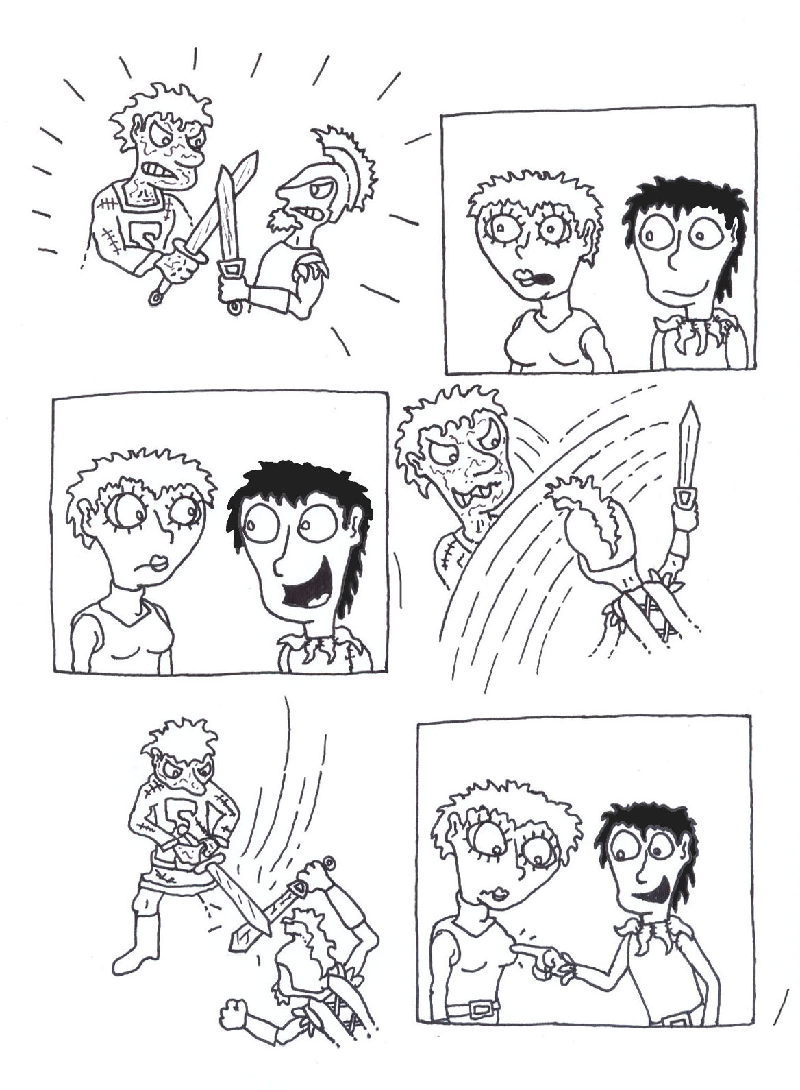 ) heissen und gewissermaßen eine Art "League of Extraoridinary Gentlemen" des Mittelalters heissen. Nicht ganz so abgedreht wie "Strichmann", aber doch in erster Linie komisch gedacht, geht es um Parzival (aus dem Artus-Stoffkreis), Siegfried von Xanten (Nibelungensage) und Jeanne d'Arc (historische Gestalt) gehen, welche durch eine wild aus Sagen, Märchen und historischen Fragmenten zusammengesetzte Mittelalterwelt reisen, etwas Sex & Gewalt natürlich inklusive. Würde wohl ein Großprojekt werden; der erste Storybogen ist auf ca. 100 Seiten angelegt, eine etwa gleichgroße Fortsetzung hätte ich auch schon im Hinterkopf.