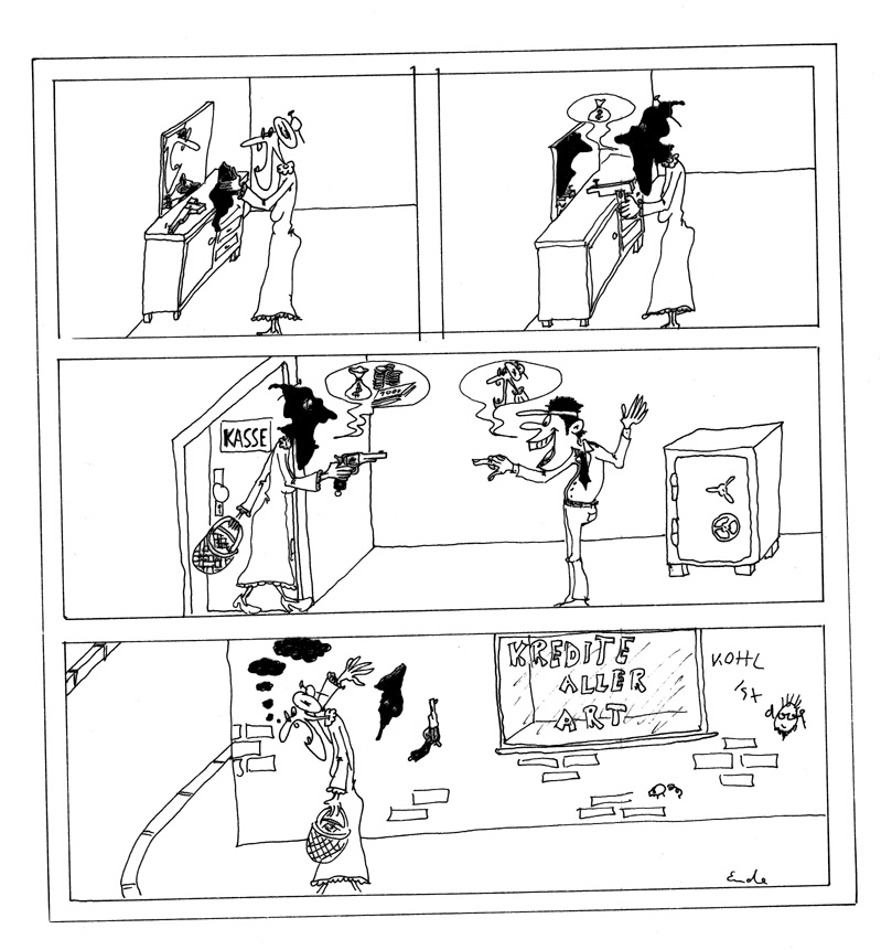 Irbgendwie erinnern mich deine Zeichnungen vom Stil her an die Bruce Blitz Sachen. Du hast nicht zufällig eines seiner Bücher.