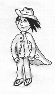 Gefällt mir eigentlich ganz gut, aber es müsste noch bedrohlicher wirken, z.B. mit längerem Umhang und ganz in schwarz gekleidet, der Hut tief im Gesicht...