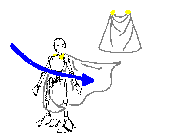 Dort laufen die Falten hin und beim wehen des Caps darauf achten das es dem Wind folgt.Je stärker der Wind deso doller weht das Cape.