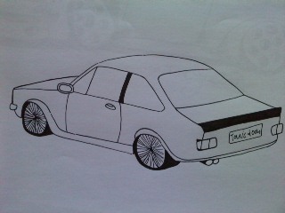 Du hast ein paar kleine Perspektivenfehler. Zum Beispiel zeigt der Rückspiegel nicht nach hinten, oder das Auto ist hinten etwas schief (fällt nach rechts unten ab). Hast du schon mal versucht, mit Fluchtpunkten zu zeichen?