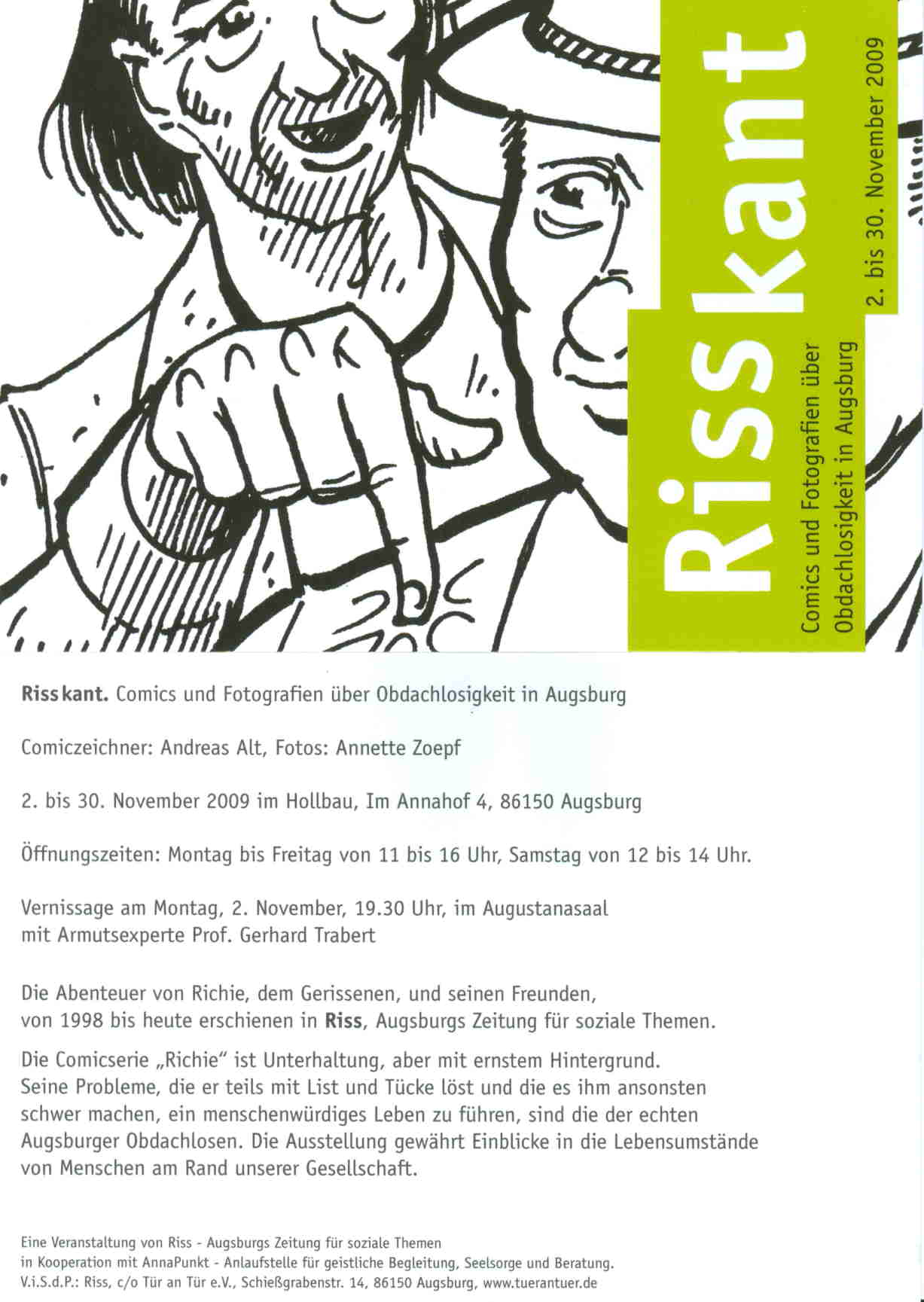 Es sieht so aus, als würde es sich lohnen, Comics auszustellen. Das ist auf jeden Fall etwas Ungewöhnliches und weckt Neugier. Wir haben "Risskant" aber bewußt nicht als Kunstausstellung aufgezogen, sondern die Comics mit dem sozialen Thema Obdachlosigkeit verknüpft.